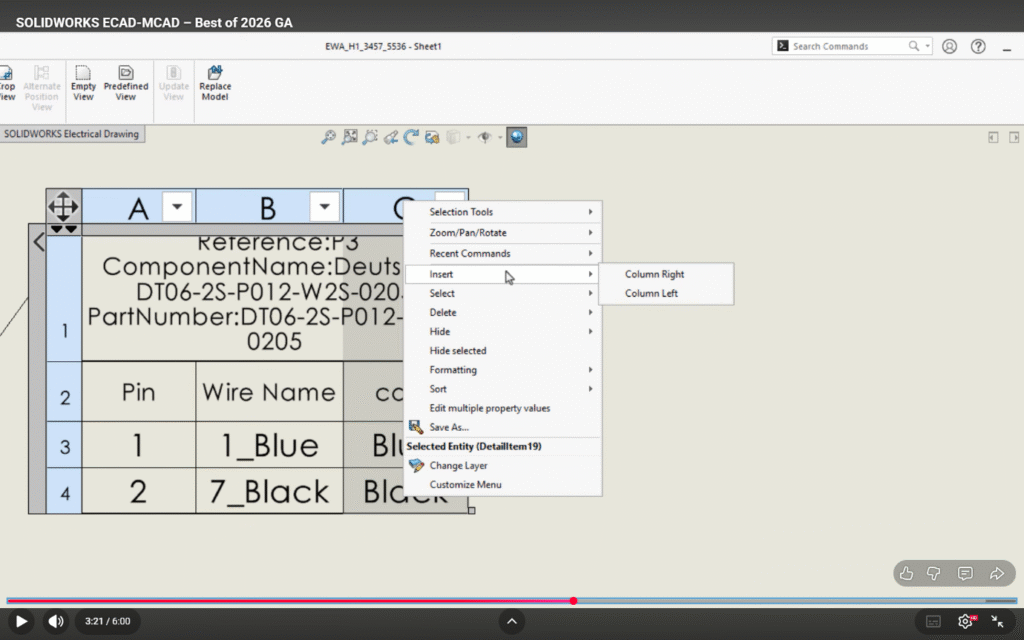 In the latest update of SOLIDWORKS Electrical, connector management becomes more powerful and flexible with the introduction of expanded variables in connector tables. This enhancement improves how electrical designers document, customize, and automate connector-related information directly within their projects.